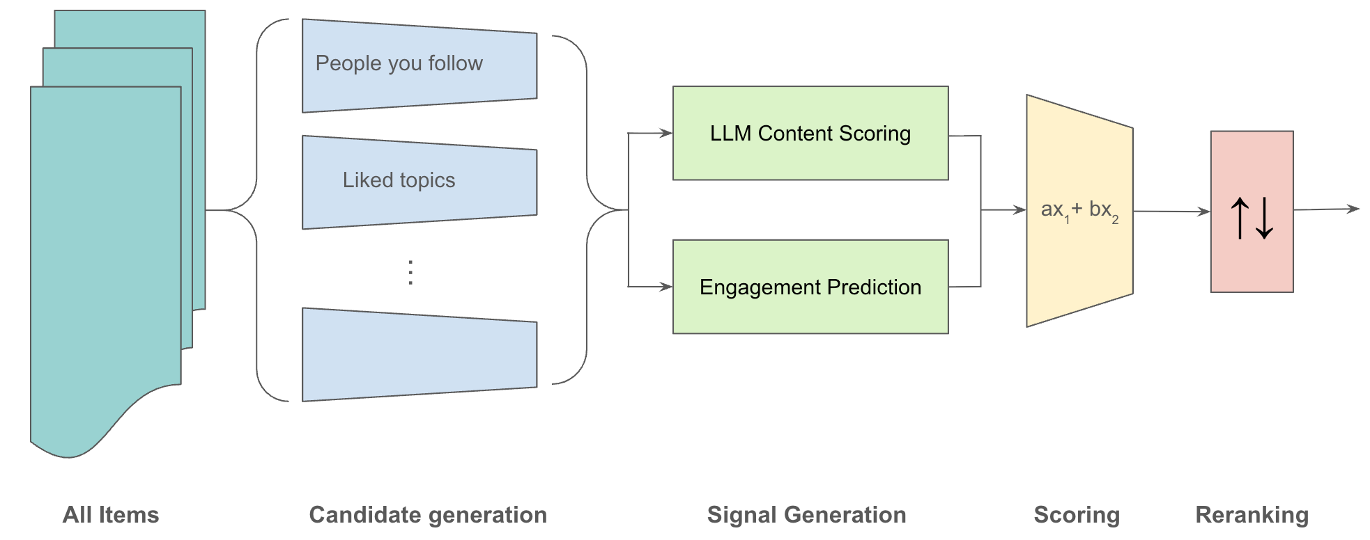 This is a fairly standard recommendation pipeline, broadly similar to what you will find in use at any major platform.